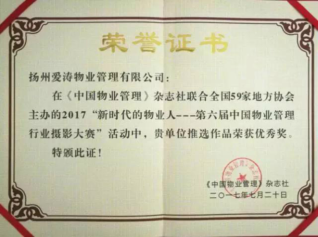 在住房和城乡建设部房地产市场监管司的指导下,在中国物业管理协会的领导下,《中国物业管理》杂志社与地方行业协会共同组织的第六届行业摄影大届于7月20日在重庆成功举行。爱涛物业上报的作品在12800余幅参赛作品中脱颖而出,喜获优秀奖。